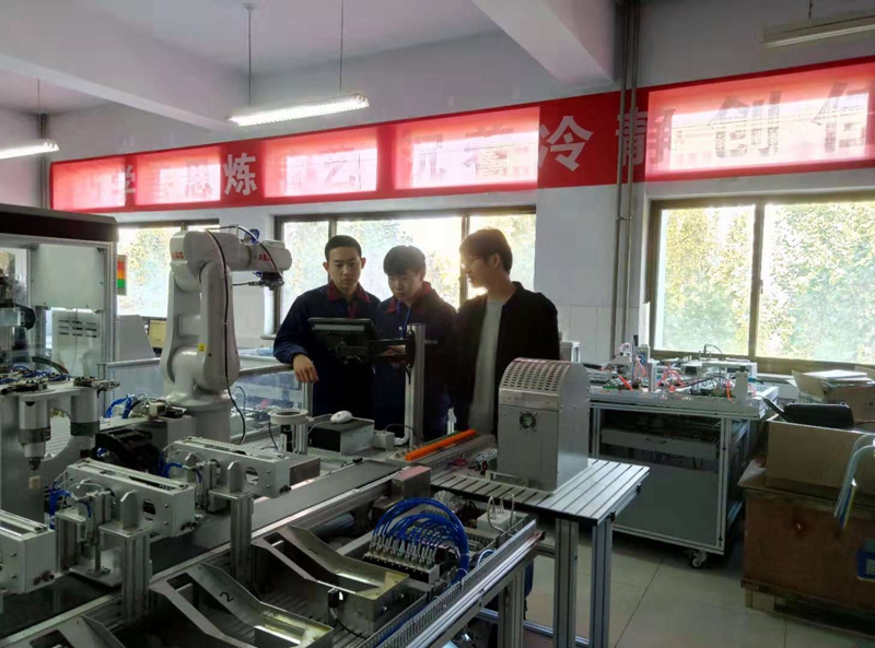 “机电一体化项目”赛项比赛需要参赛队员在6个小时内,现场操作“SX-815Q机电一体化综合实训考核设备”,完成设备的安装、接线、排故、电路设计、编程、调试等工作。电气工程系领导高度重视比赛,赛前积极联系相关赛项专家前来我校给予指导,联系主办校熟悉比赛环境和设备。指导教师赛前制订了详细的方案,认真研究往年的样题,指导学生把每一个环节练到极致。参赛选手杨迎鑫、陈长超平时训练一丝不苟,精益求精,在每一个环节都力求完美,最终不负众望,取得了一等奖的好成绩。
