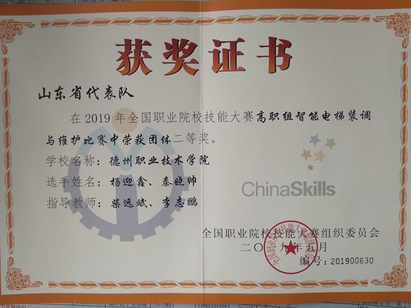 近日,我校电气工程系在2019年全国职业院校技能大赛高职组“智能电梯装调与维护”赛项的比赛中,突破重围喜获银奖。