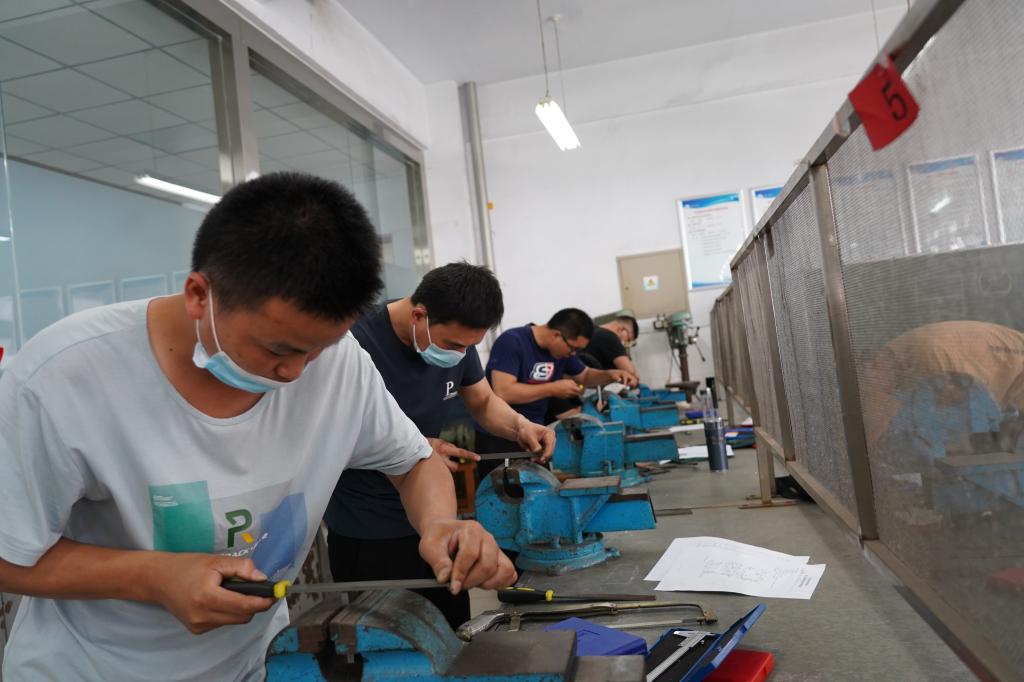 本次“金蓝领”技师、高级技师结业考评,涉及中式面点师、中式烹调师、钳工、车工、汽车维修工、电工、砌筑工、工程测量员8个职业(工种),各个职业(工种)的考生严格按照职业标准完成了理论考核、实操考评、论文答辩结业考评。在疫情防控常态化形势下,筑牢防线不放松,学校制定了完善的疫情防控方案和应急预案,并严格按照防控预案组织考试,确保了本次“金蓝领”技师、高级技师结业考评的顺利进行。